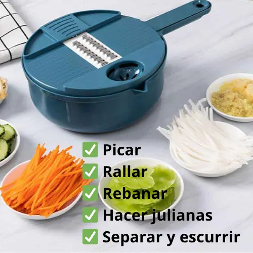 Gracias a sus cuchillas precisas, obtenés cortes uniformes y prolijos que hacen que cualquier plato luzca espectacular. Sentite como un chef en tu propia cocina, sin esfuerzo ni experiencia previa.